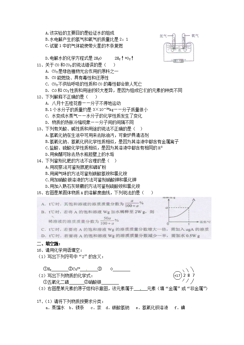 【文档名称】 2011年云南昆明中考化学真题及答案(Word版).doc