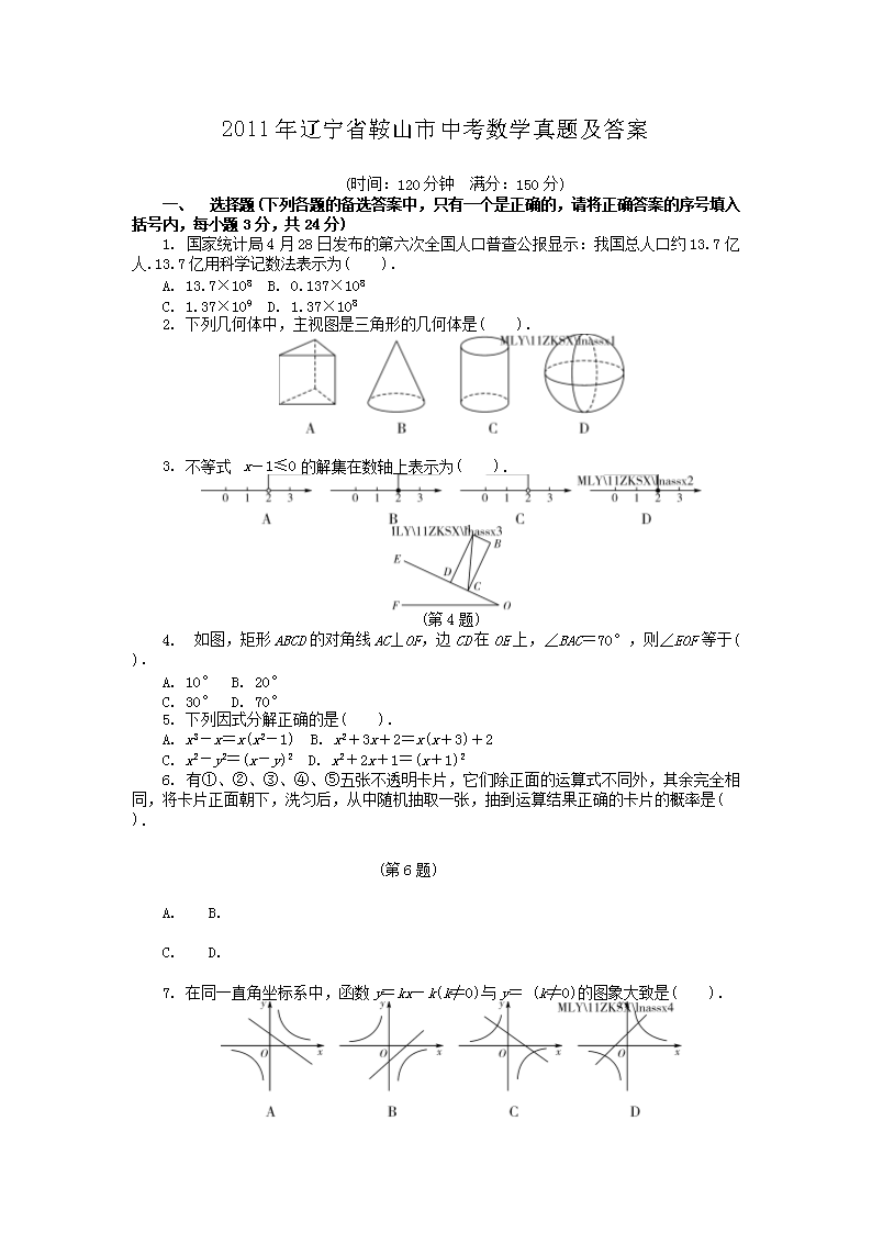 【文档名称】 2011年辽宁省鞍山市中考数学真题及答案(Word版).doc