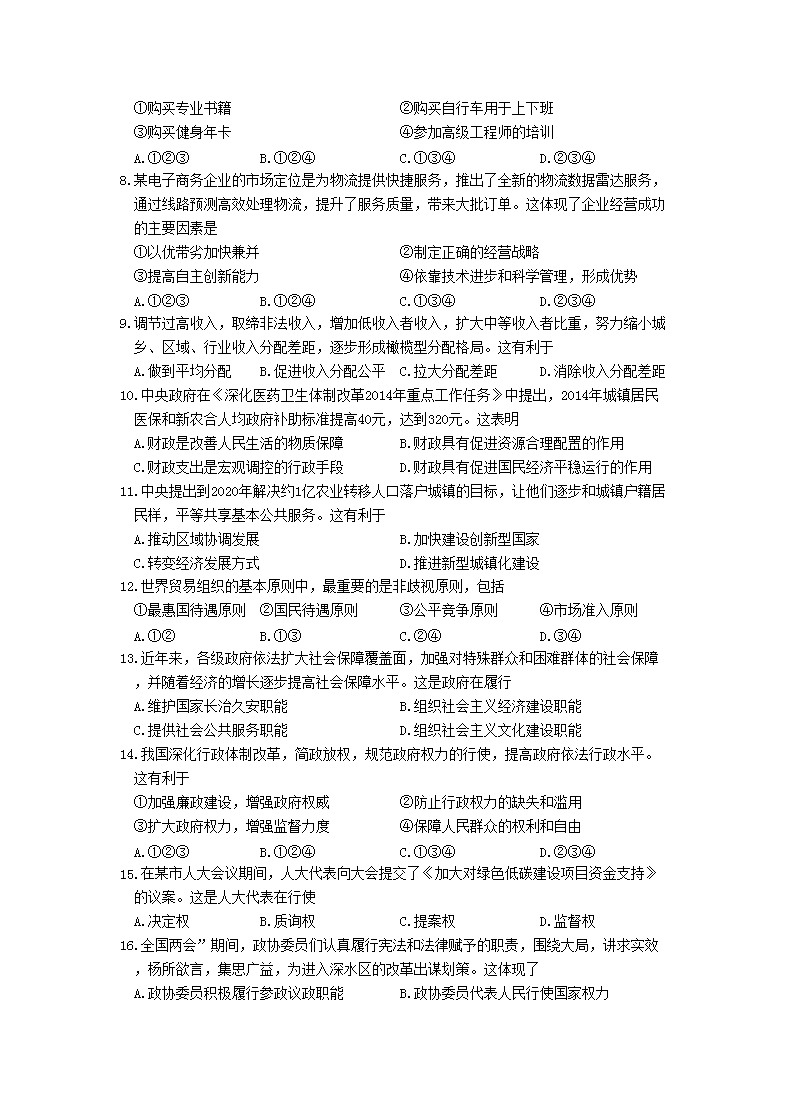 【文档预览】 无忧考网整理发布2014年福建普通高中会考政治真题及答案(Word版),前五页预览如下: