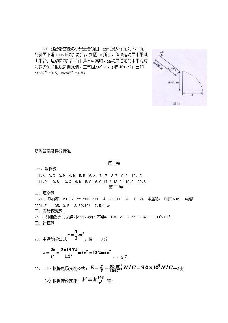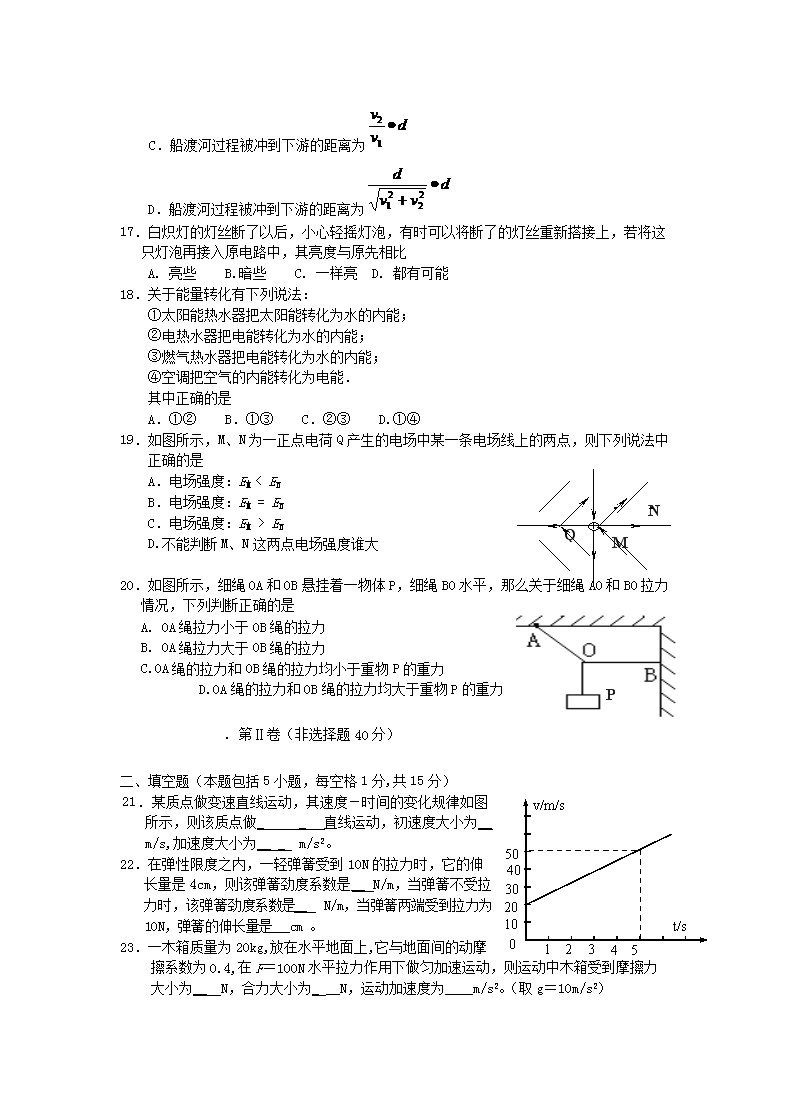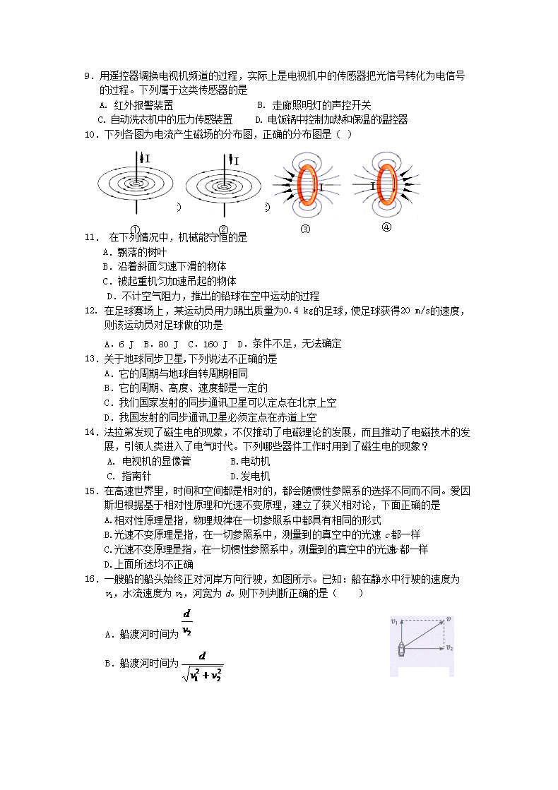 【文档名称】 2009年福建普通高中会考物理真题及答案(Word版).doc
