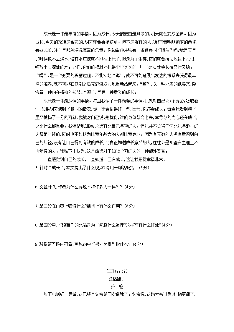 【文档预览】 无忧考网整理发布2012年安徽蚌埠中考语文真题及答案(Word版),前五页预览如下: