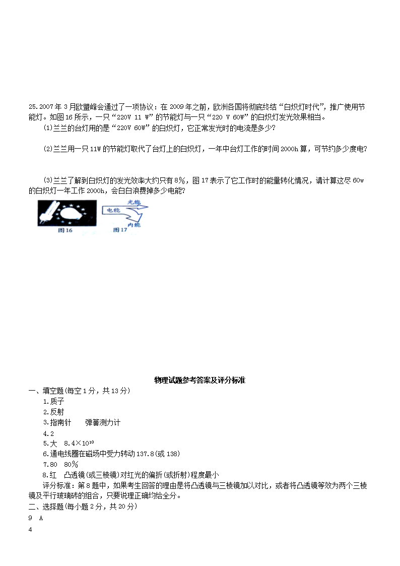 【文档名称】 2007年河南濮阳中考物理真题及答案(Word版).doc