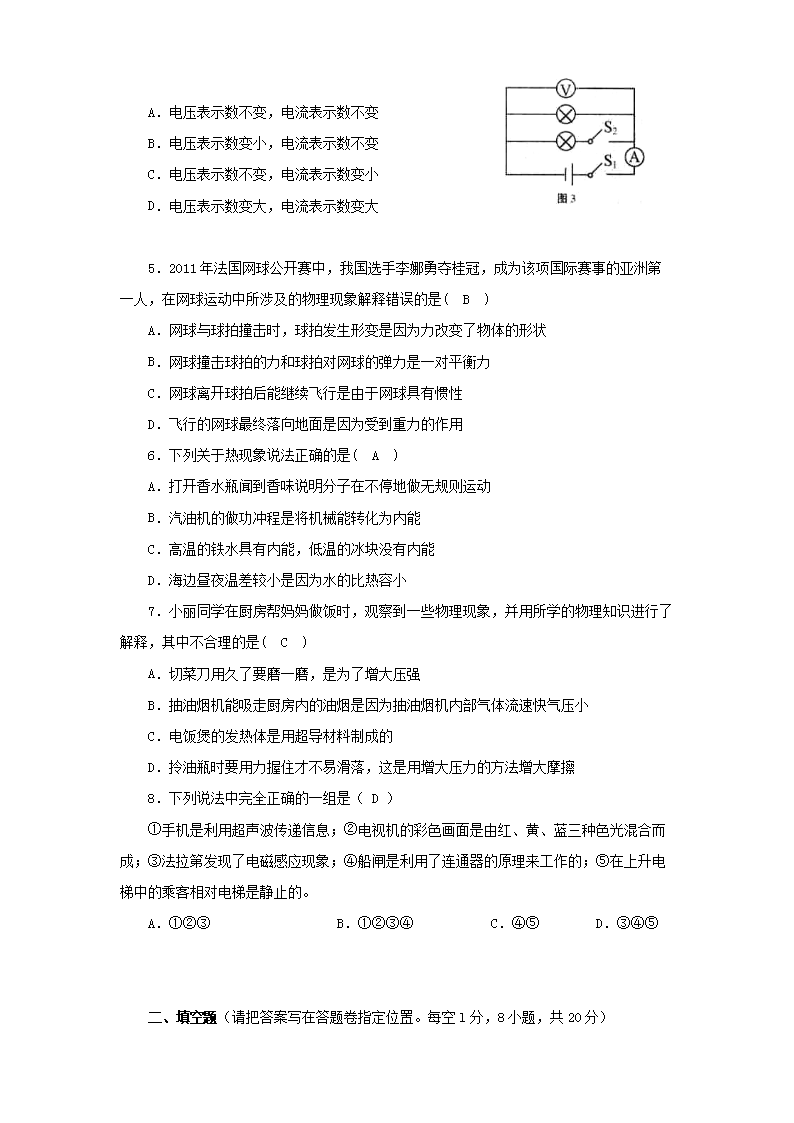 【文档名称】 2011年云南大理中考物理真题及答案(Word版).doc