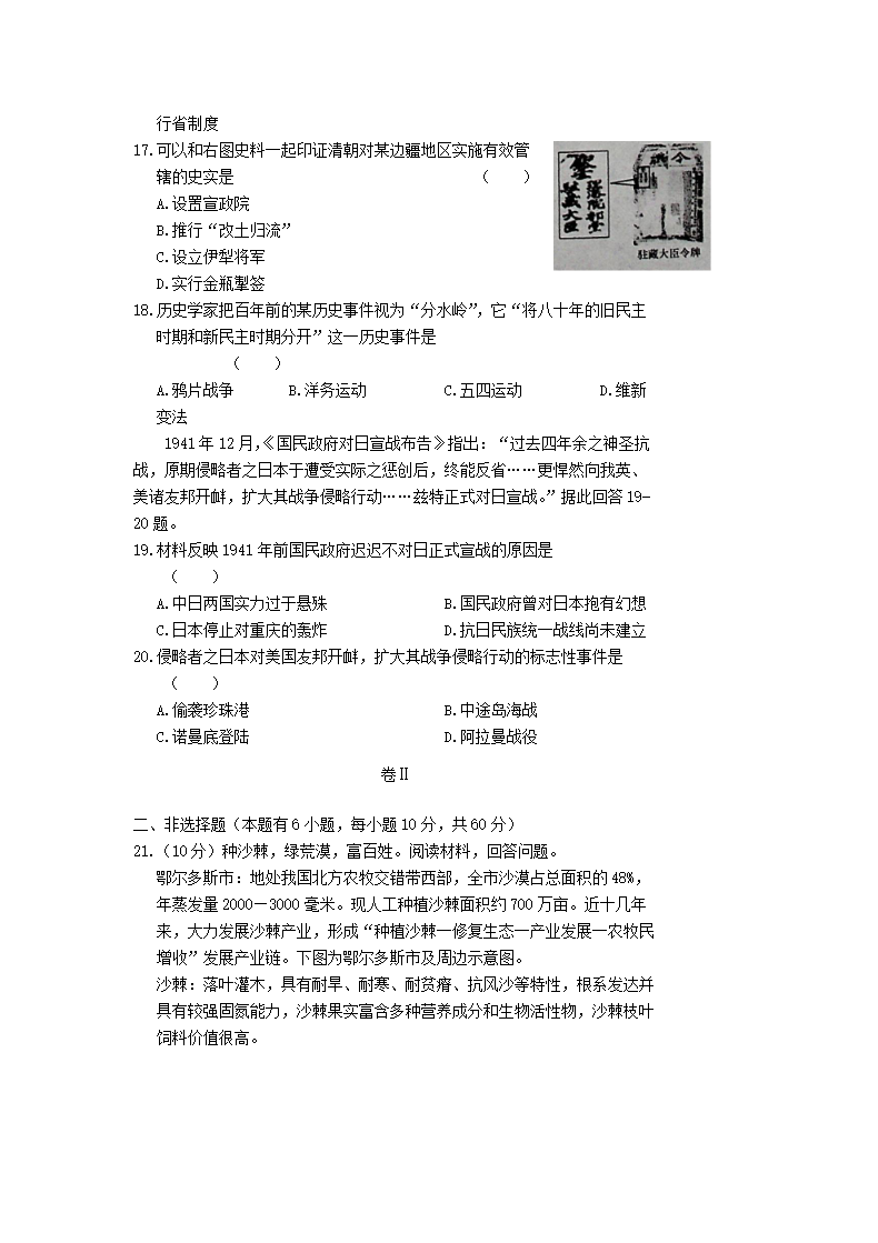 【文档预览】 无忧考网整理发布2019浙江省舟山市中考历史真题及答案(Word版),前五页预览如下: