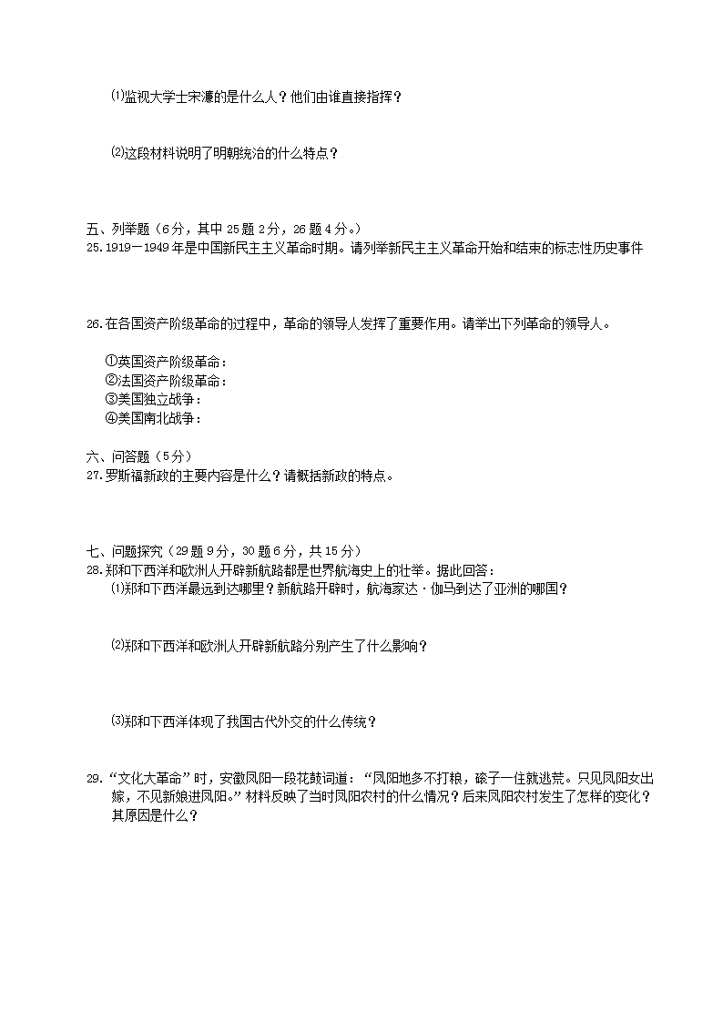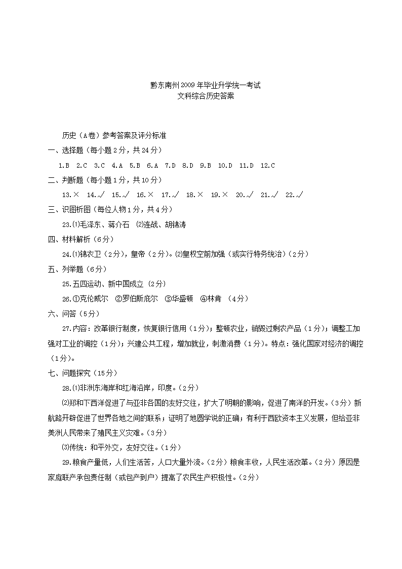 【文档名称】 2009年贵州黔东南州中考历史真题及答案(Word版).doc