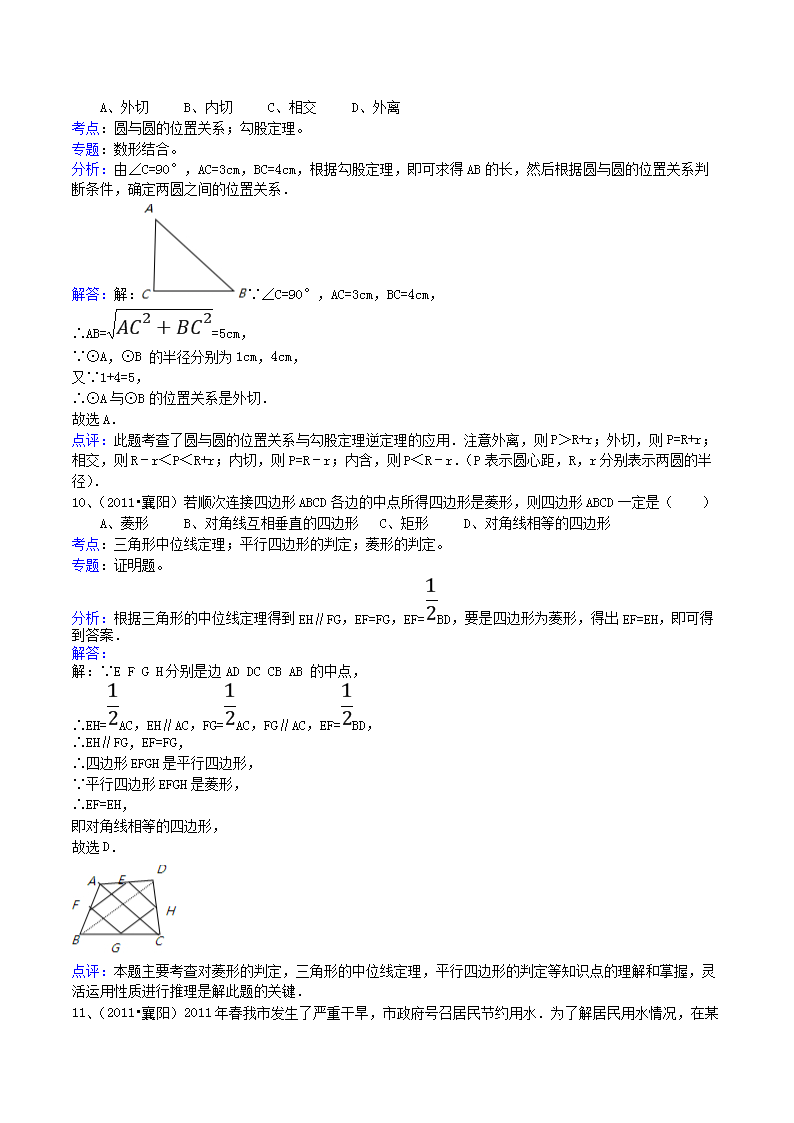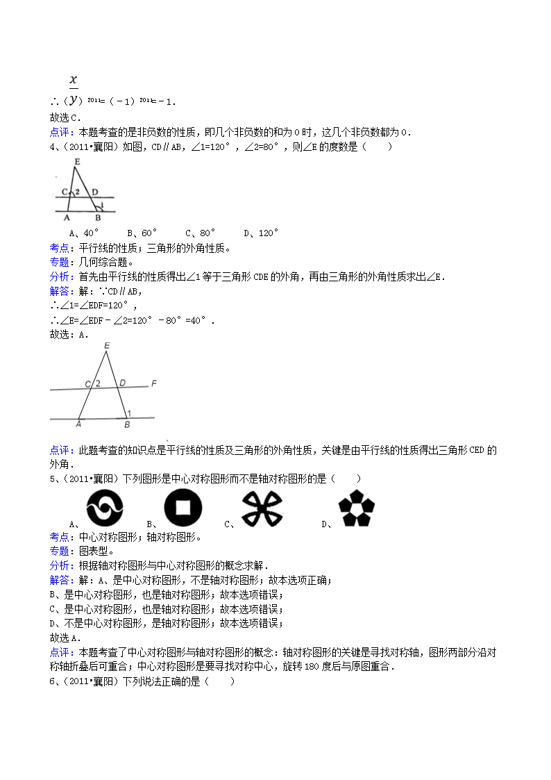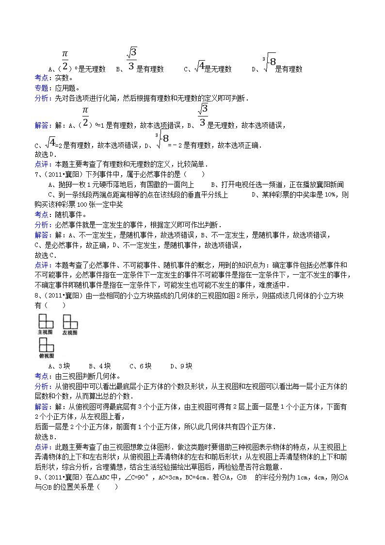 【文档预览】 无忧考网整理发布2011年湖北省襄阳市中考数学真题及答案(Word版),前五页预览如下: