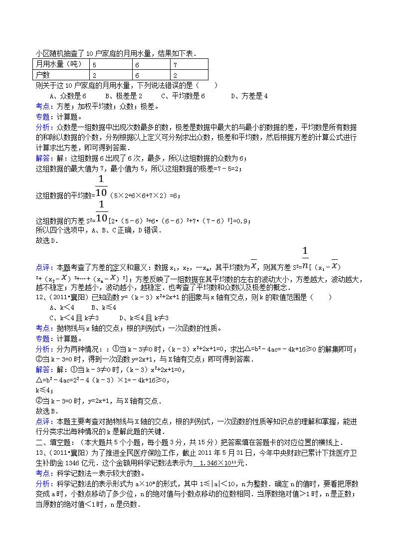 【文档名称】 2011年湖北省襄阳市中考数学真题及答案(Word版).doc