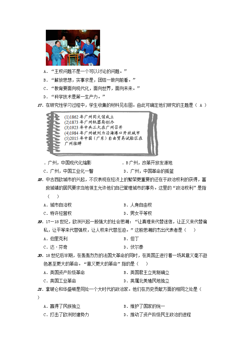 【文档名称】 2015年广东省梅州市中考历史真题及答案(Word版).doc