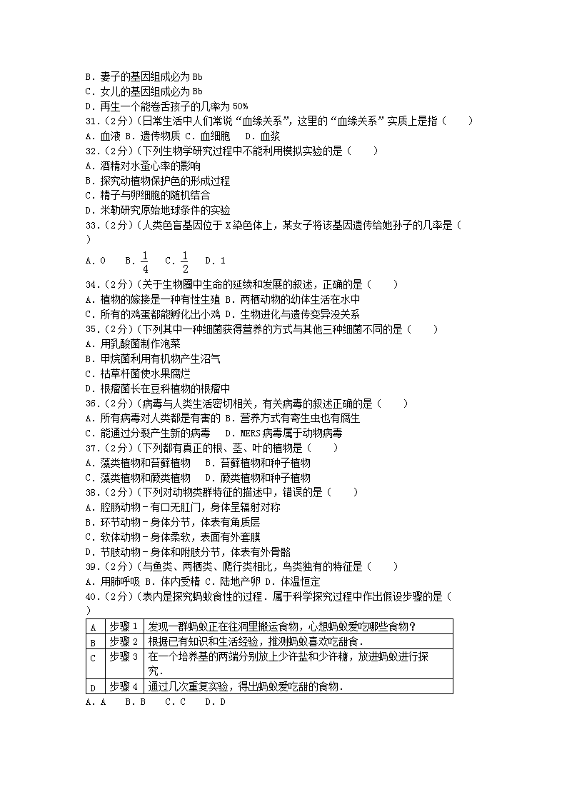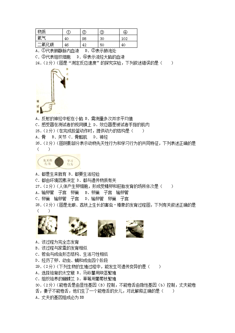 【文档名称】 2015年广东省梅州市中考生物真题及答案(Word版).doc