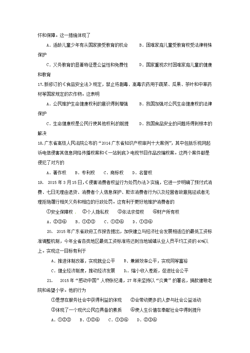 【文档名称】 2015年广东省梅州市中考思想品德真题及答案(Word版).doc