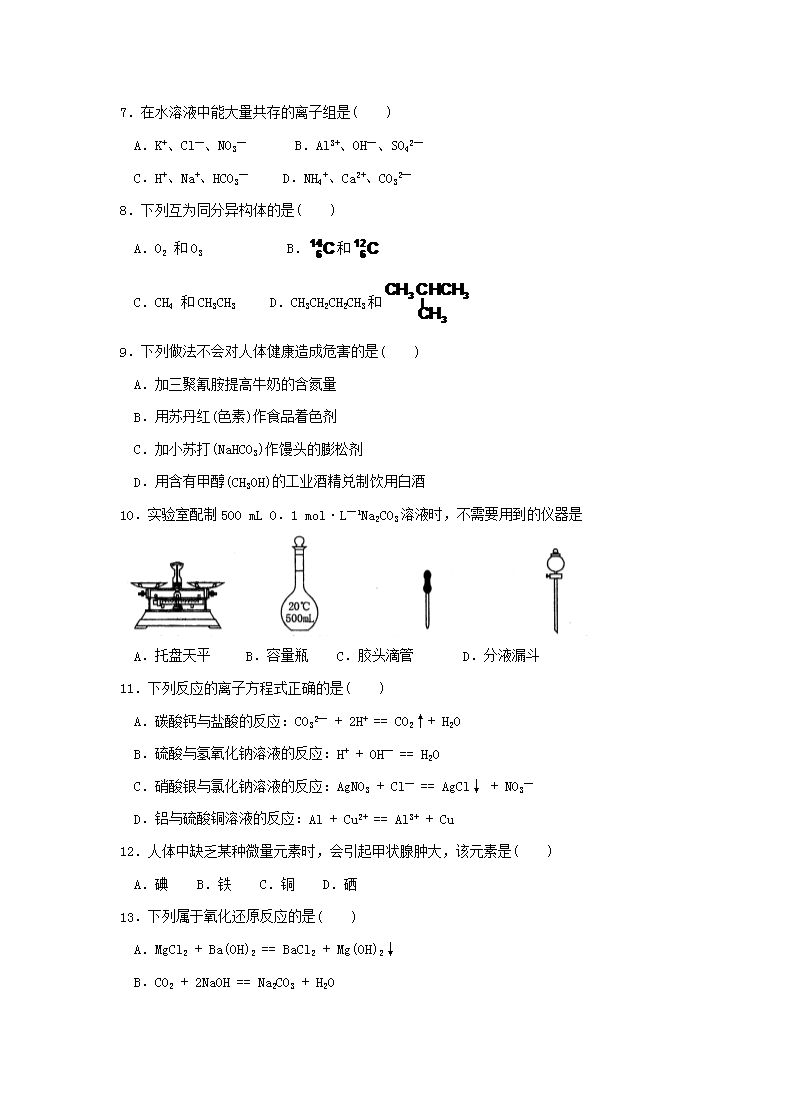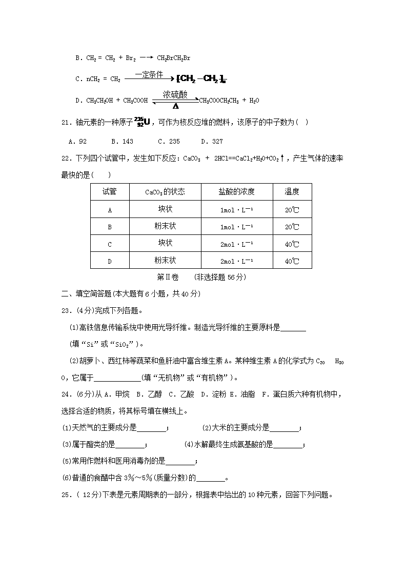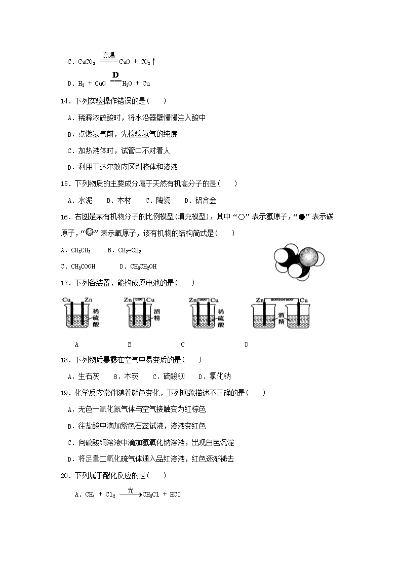 【文档名称】 2016年福建普通高中会考化学真题及答案(Word版).doc