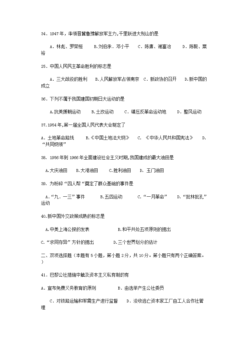 【文档名称】 1997年福建普通高中会考历史真题及答案(Word版).doc