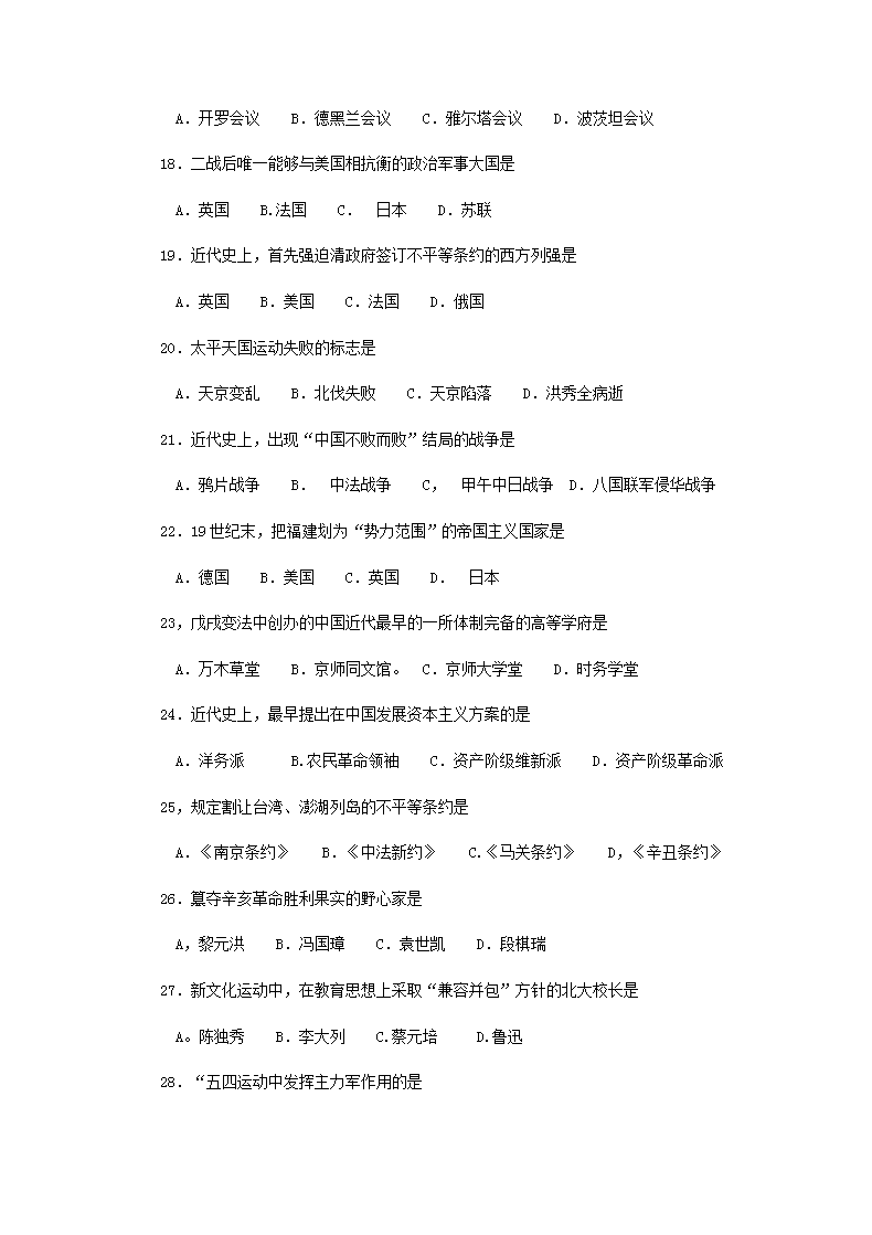 【文档名称】 1998年福建普通高中会考历史真题及答案(Word版).doc
