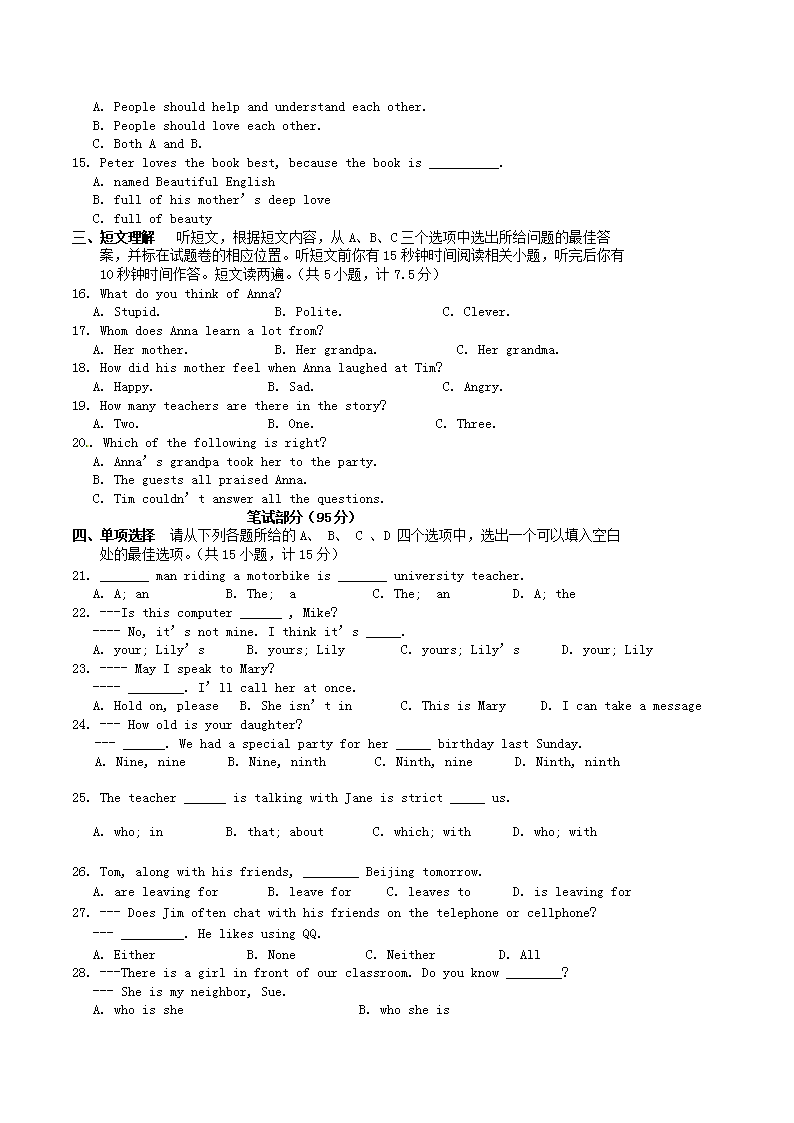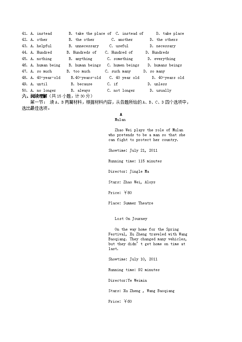 【文档预览】 无忧考网整理发布2011年湖北省恩施州中考英语真题及答案(Word版),前五页预览如下: