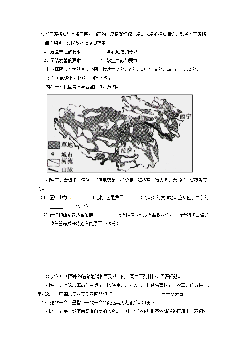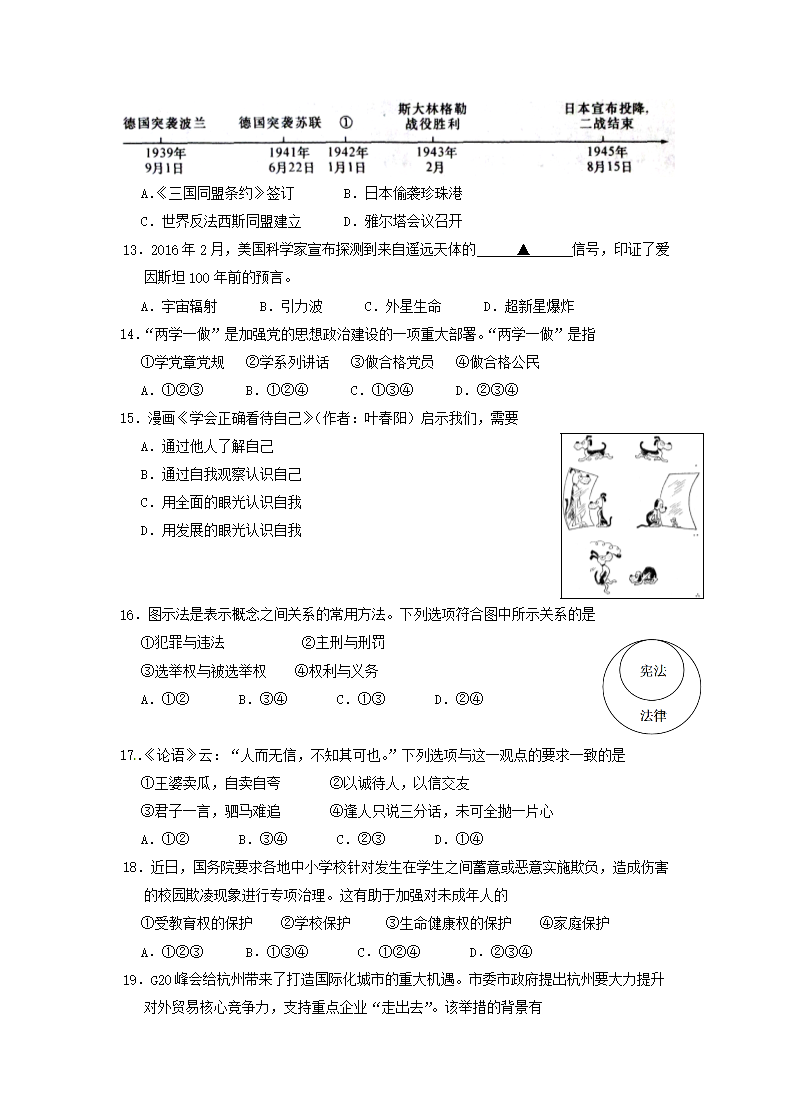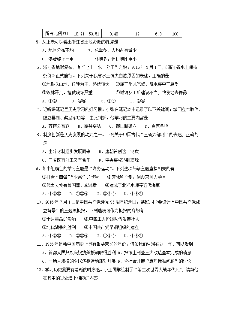 【文档名称】 2016浙江省杭州市中考历史真题及答案(Word版).doc