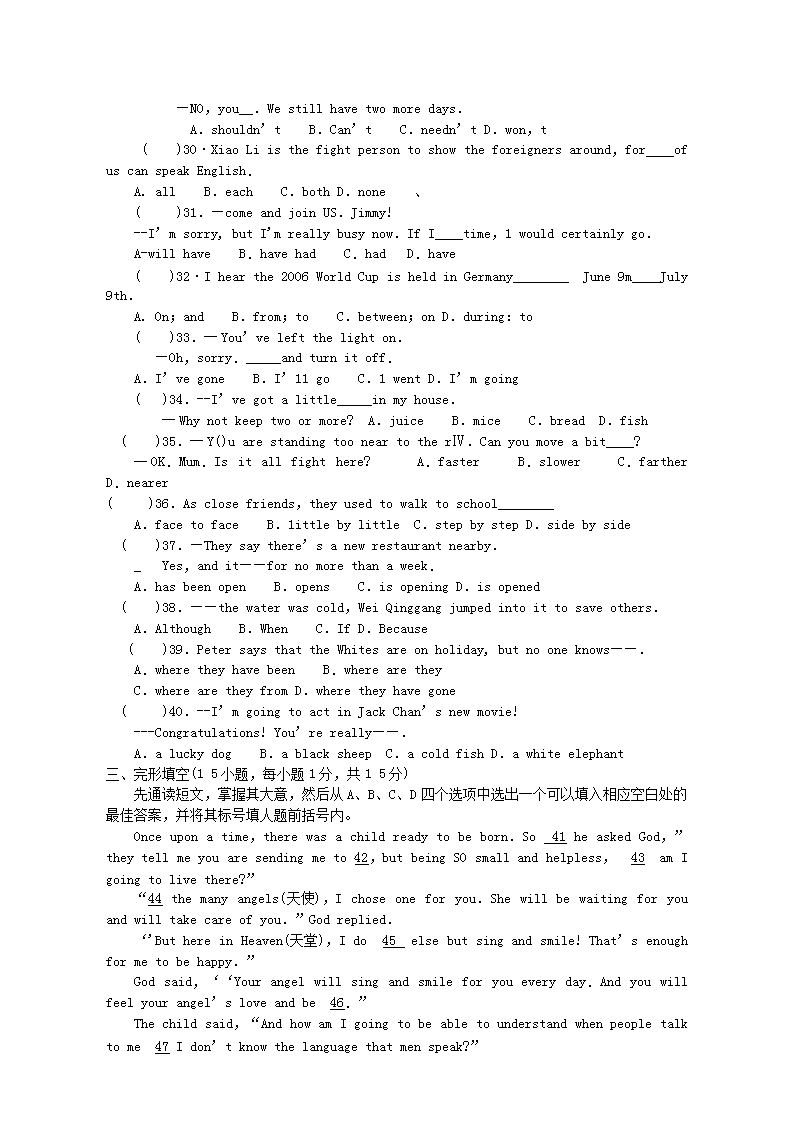 【文档名称】 2006年河南许昌中考英语真题及答案(Word版).doc