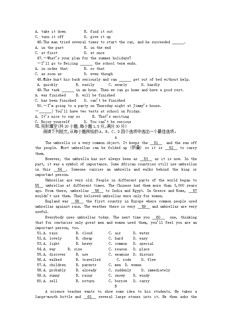 【文档名称】 2012年安徽滁州中考英语真题及答案(Word版).doc