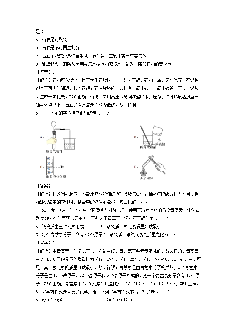 【文档名称】 2016年甘肃省嘉峪关市中考化学试题及答案(Word版).doc