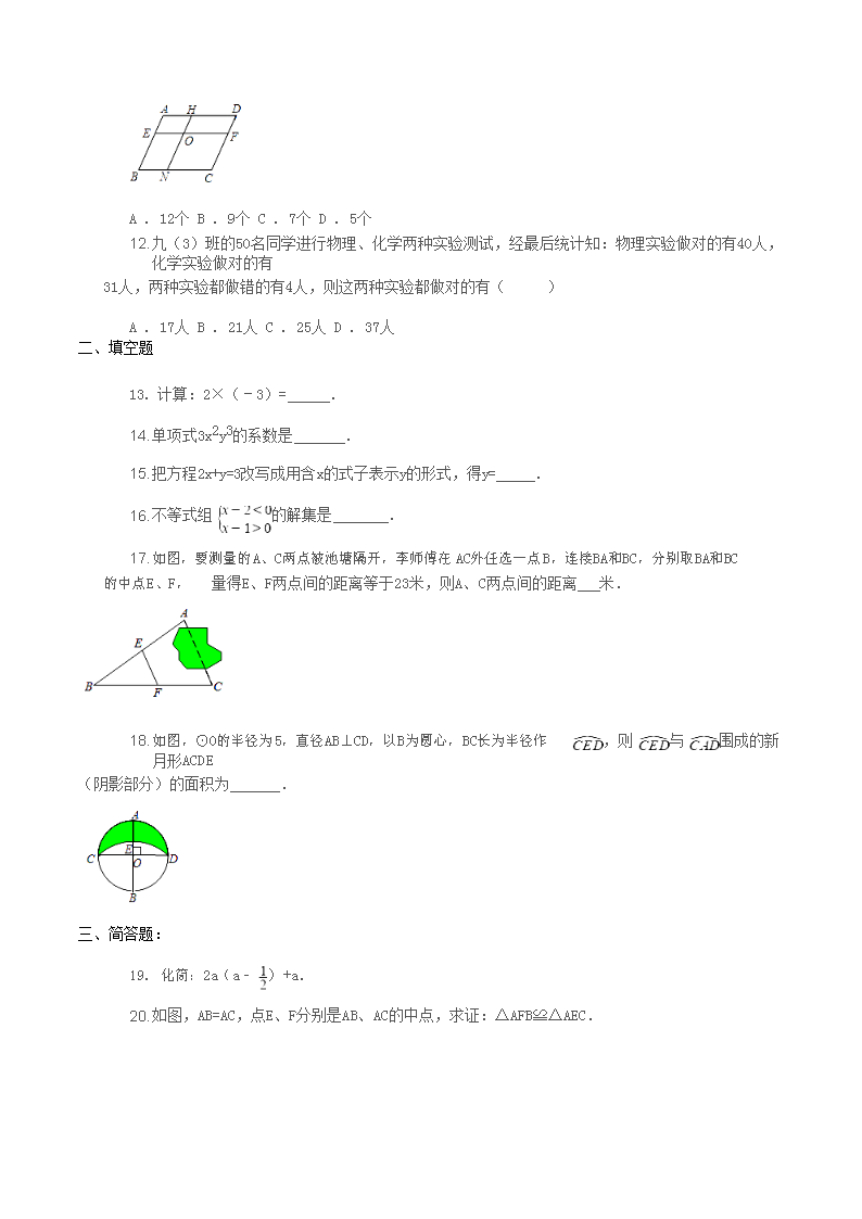 【文档名称】 2011年广西柳州市中考数学真题及答案(Word版).doc