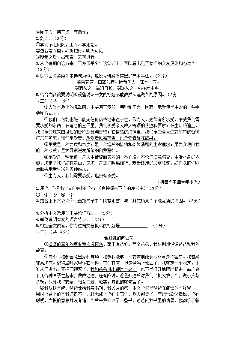 【文档预览】 无忧考网整理发布2011年宁夏固原中考语文真题及答案(Word版),前五页预览如下: