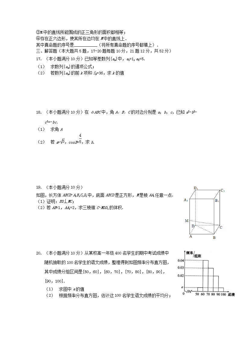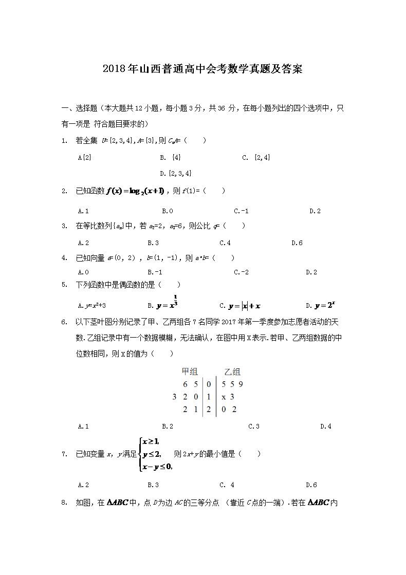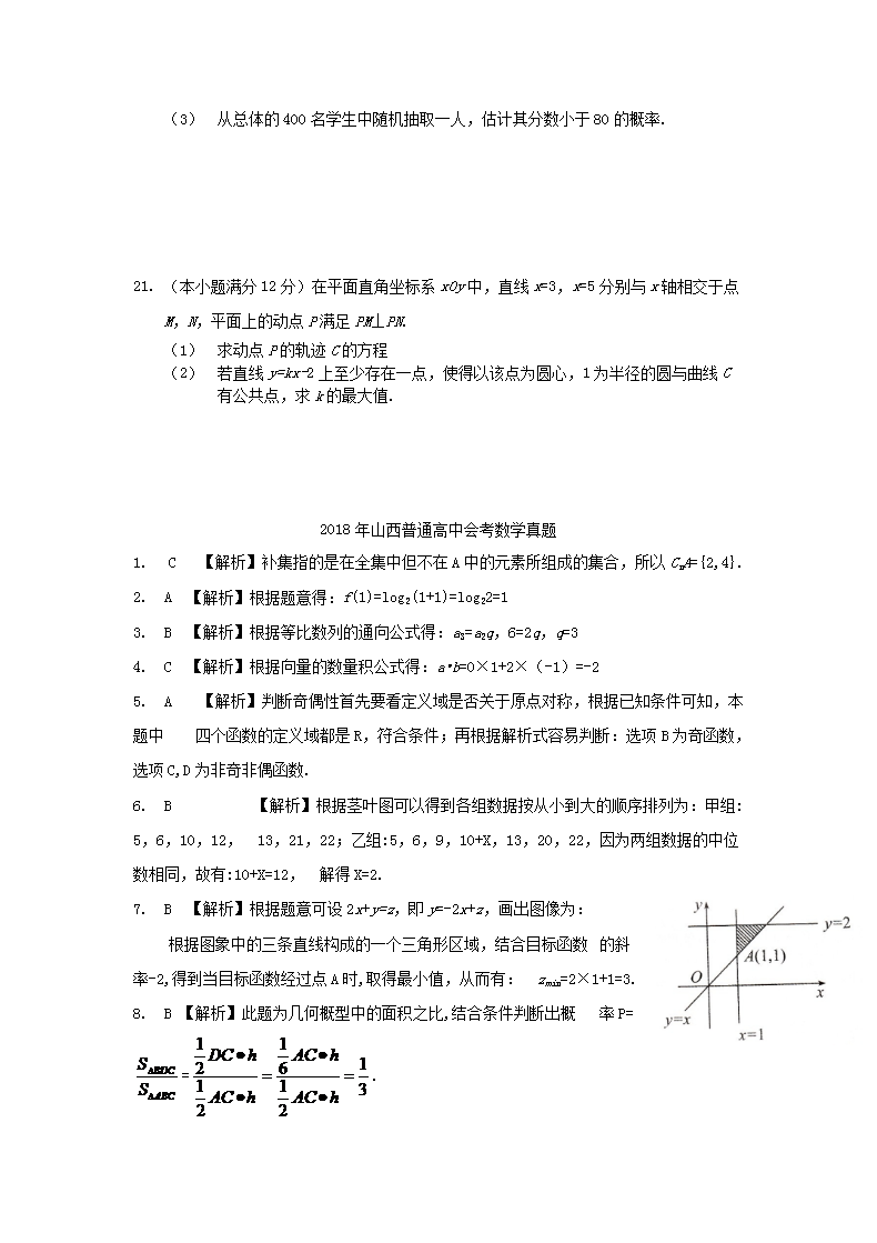 【文档名称】 2018年山西普通高中会考数学真题及答案(Word版).doc