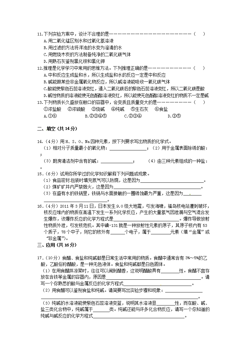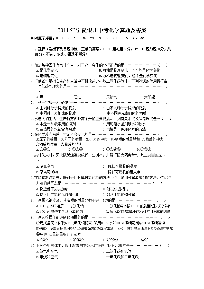 【文档名称】 2011年宁夏银川中考化学真题及答案(Word版).doc