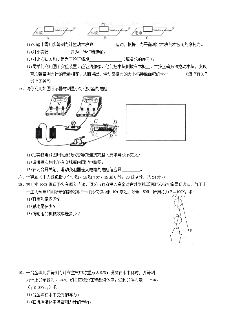 【文档名称】 2008年贵州遵义市中考物理真题及答案(Word版).doc