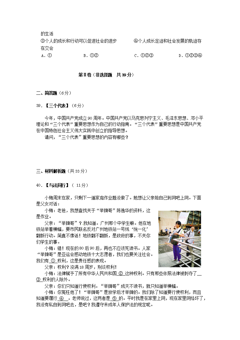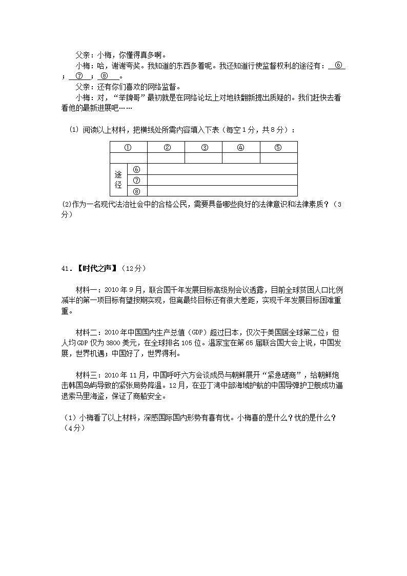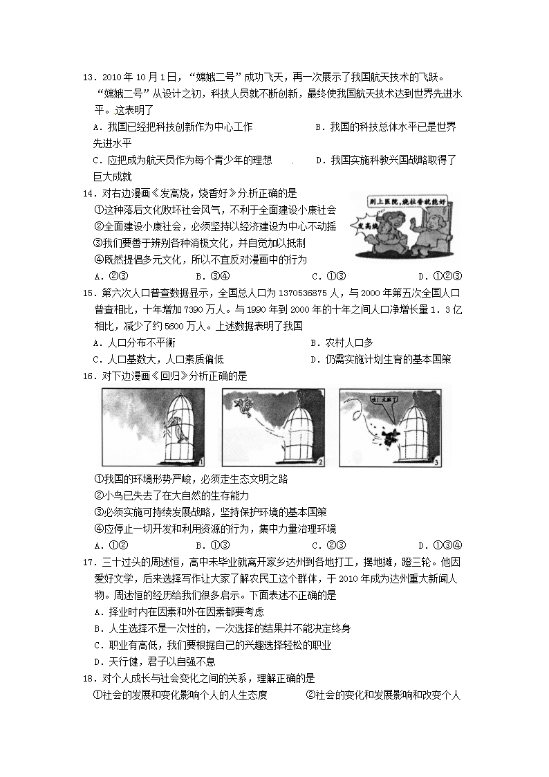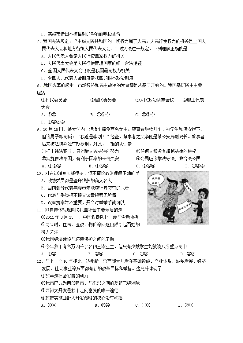 【文档名称】 2011年四川省达州市中考政治真题及答案(Word版).doc