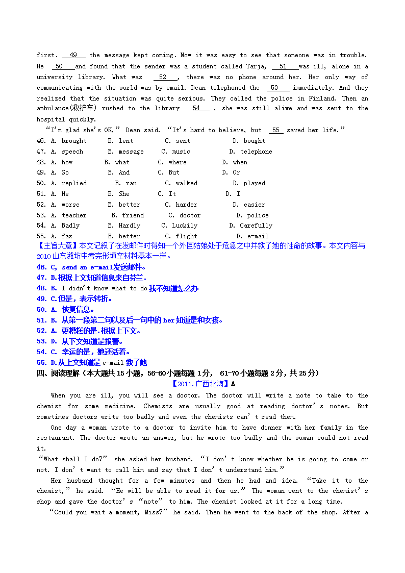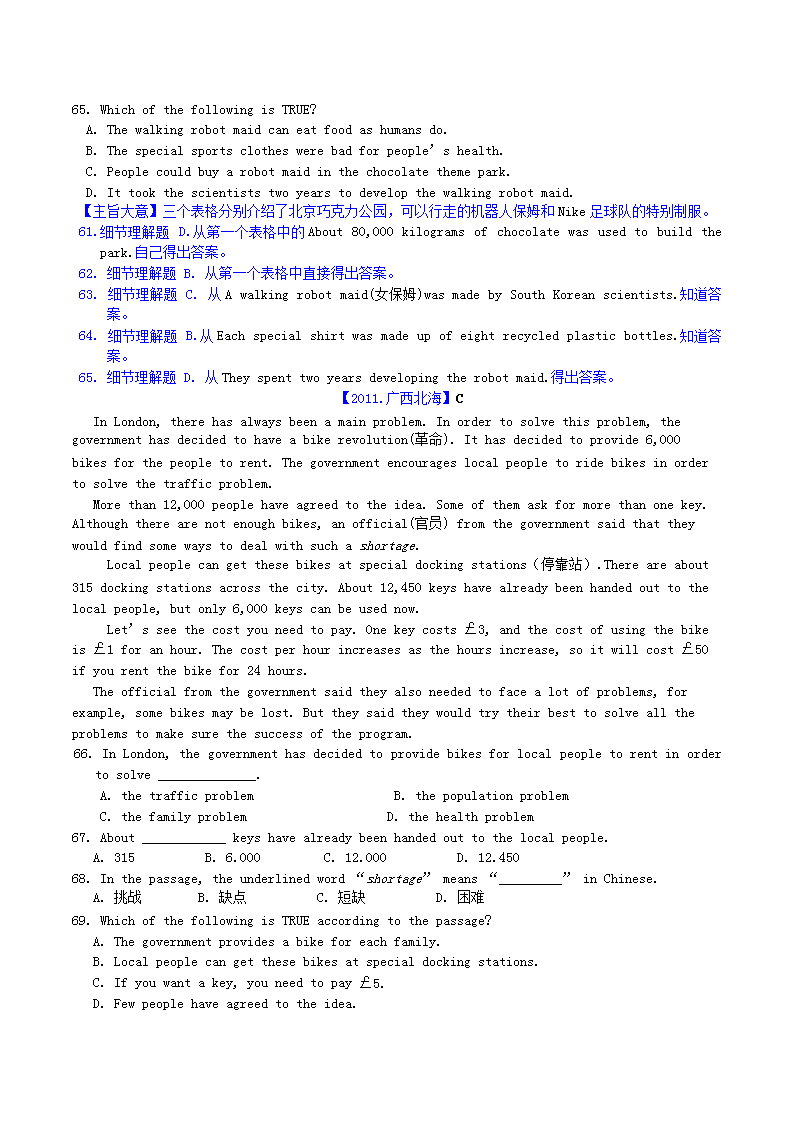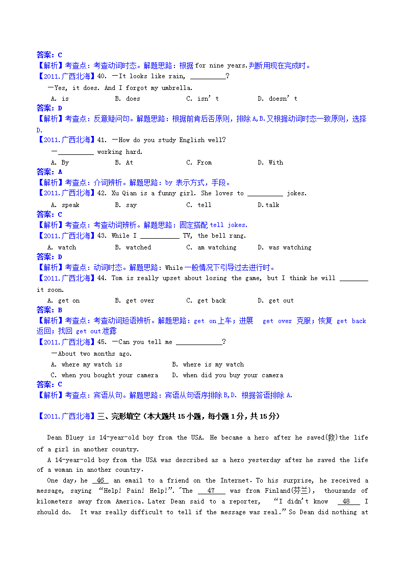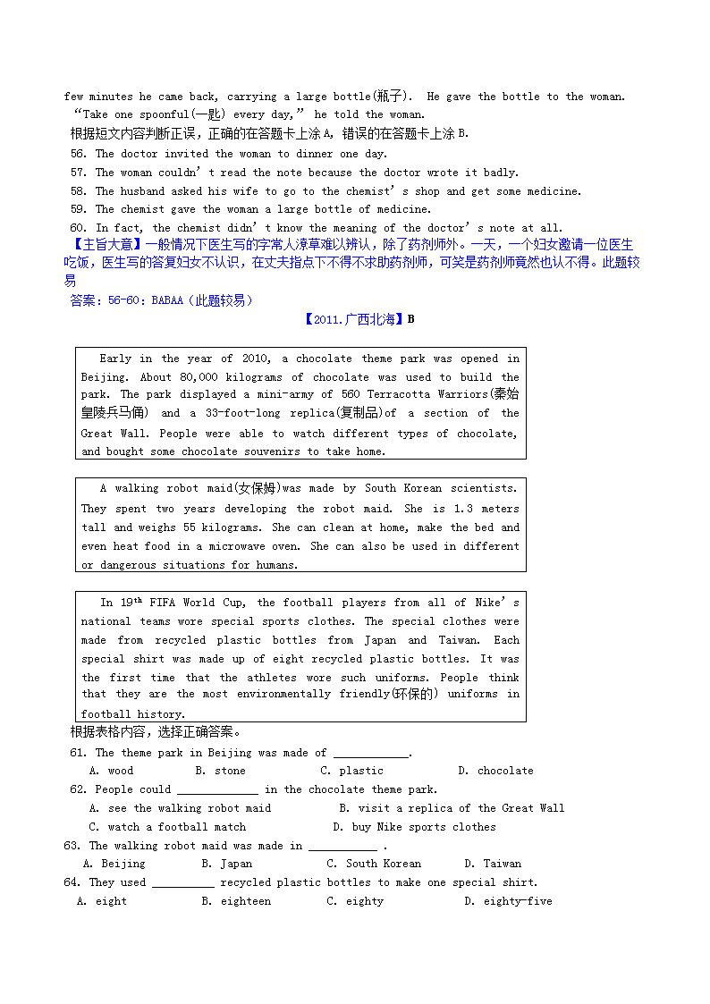 【文档名称】 2011年广西北海市中考英语真题及答案(Word版).doc