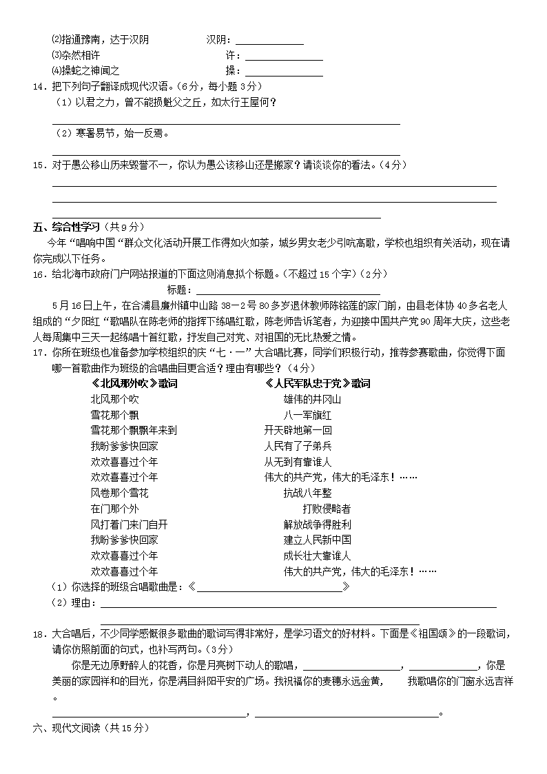 【文档名称】 2011年广西北海市中考语文真题及答案(Word版).doc