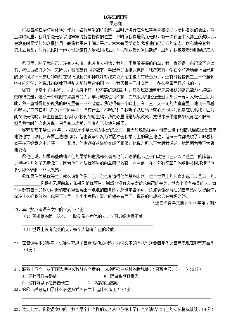 【文档预览】 无忧考网整理发布2011年广西北海市中考语文真题及答案(Word版),前五页预览如下: