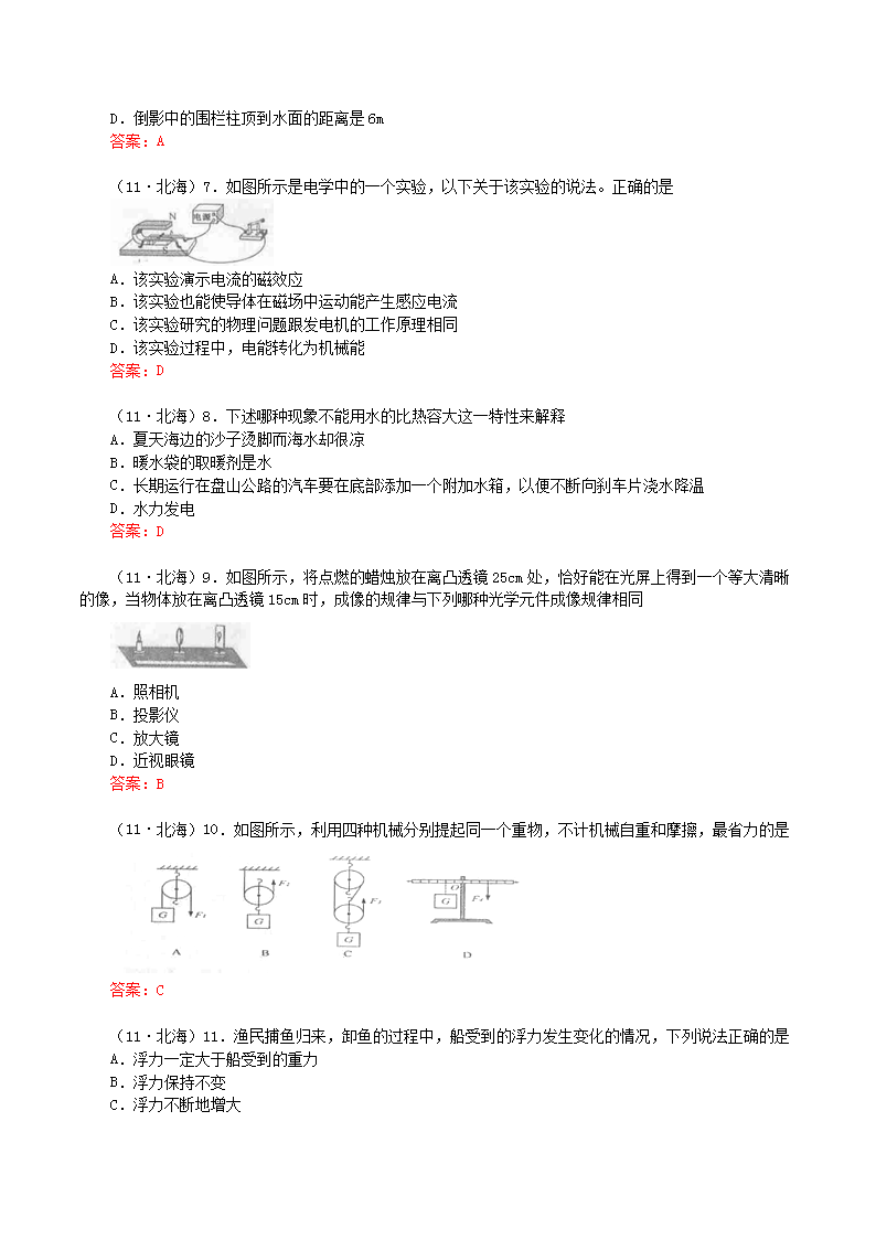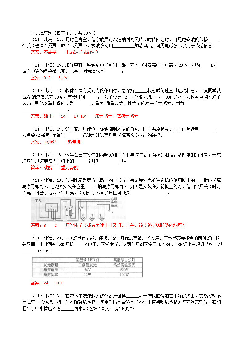 【文档名称】 2011年广西北海市中考物理真题及答案(Word版).doc