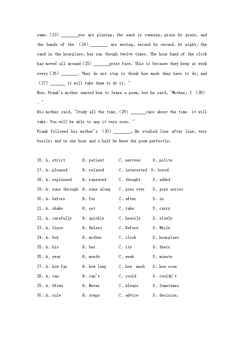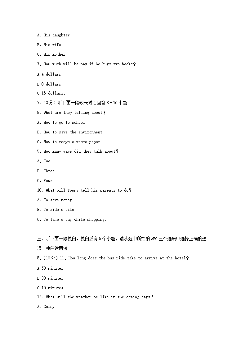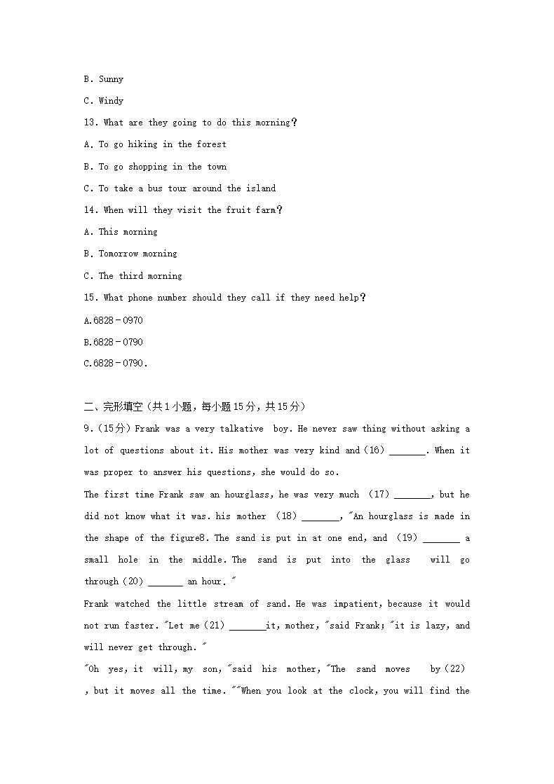 【文档名称】 2015浙江省湖州市中考英语真题及答案(Word版).doc