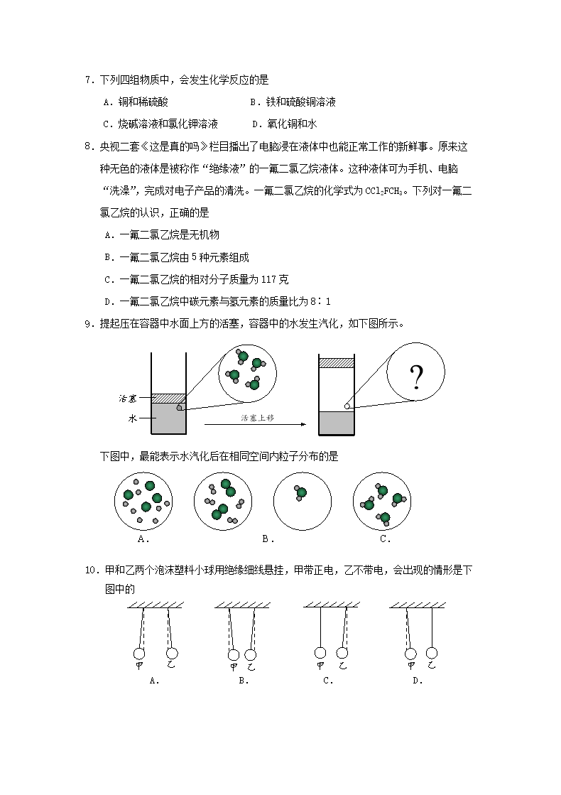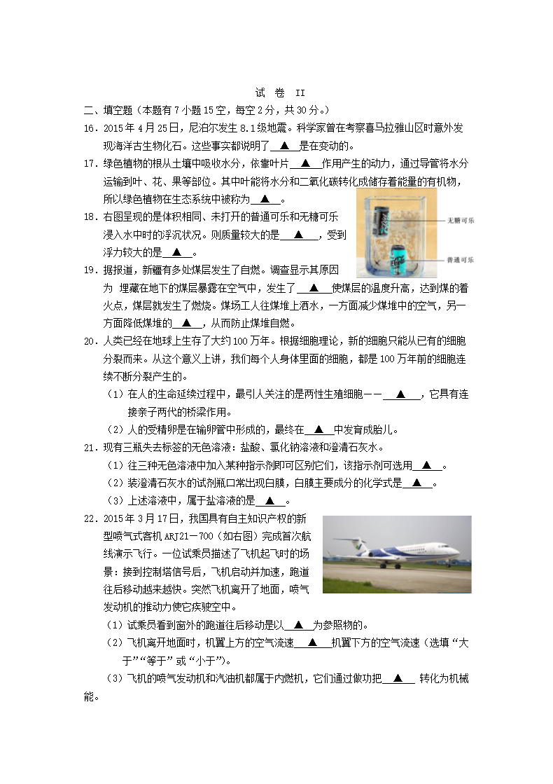 【文档名称】 2015浙江省湖州市中考化学真题及答案(Word版).doc