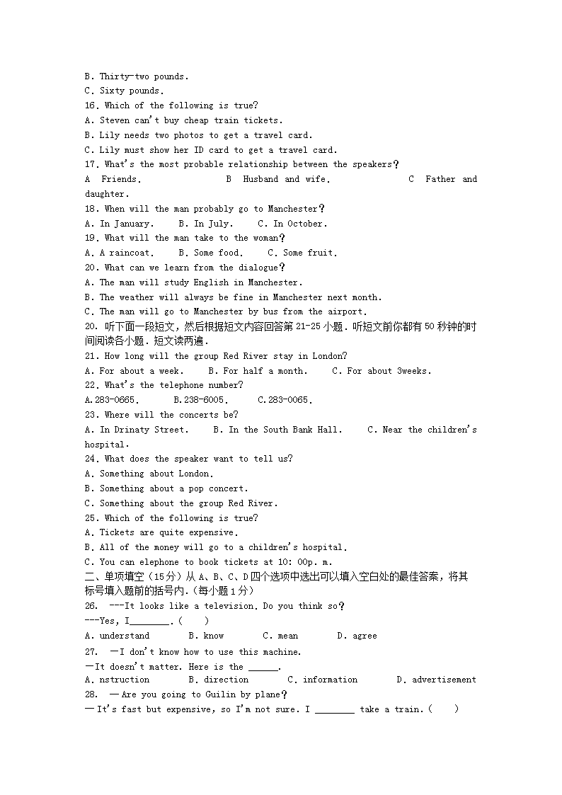 【文档预览】 无忧考网整理发布2012年青海省黄南中考英语真题及答案(Word版),前五页预览如下: