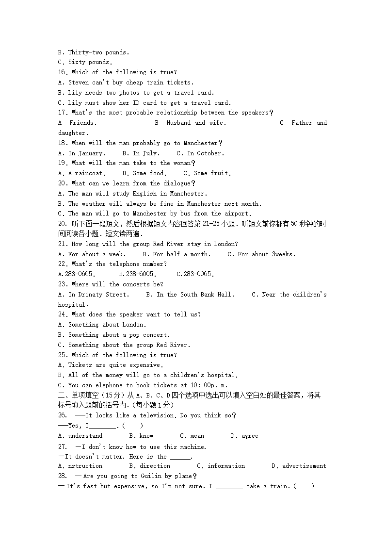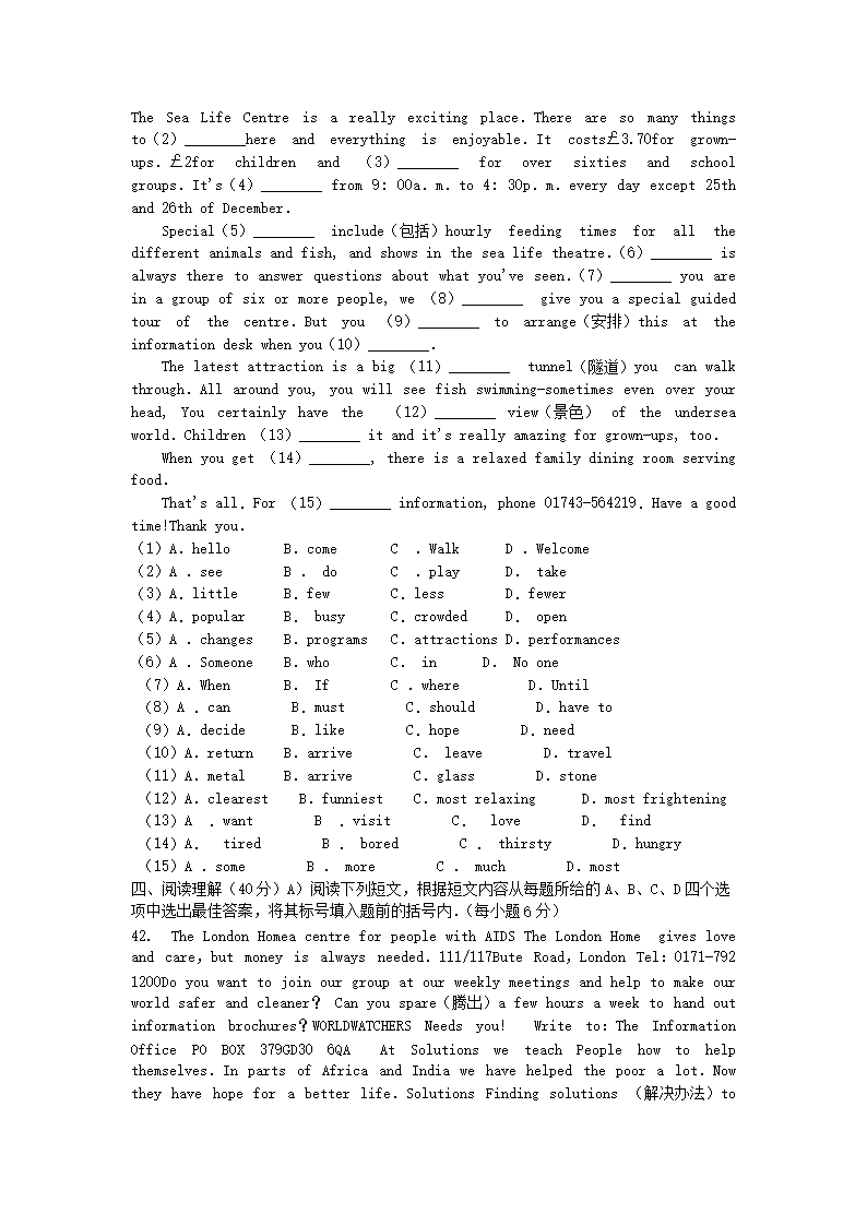 【文档预览】 无忧考网整理发布2012年青海省玉树中考英语真题及答案(Word版),前五页预览如下: