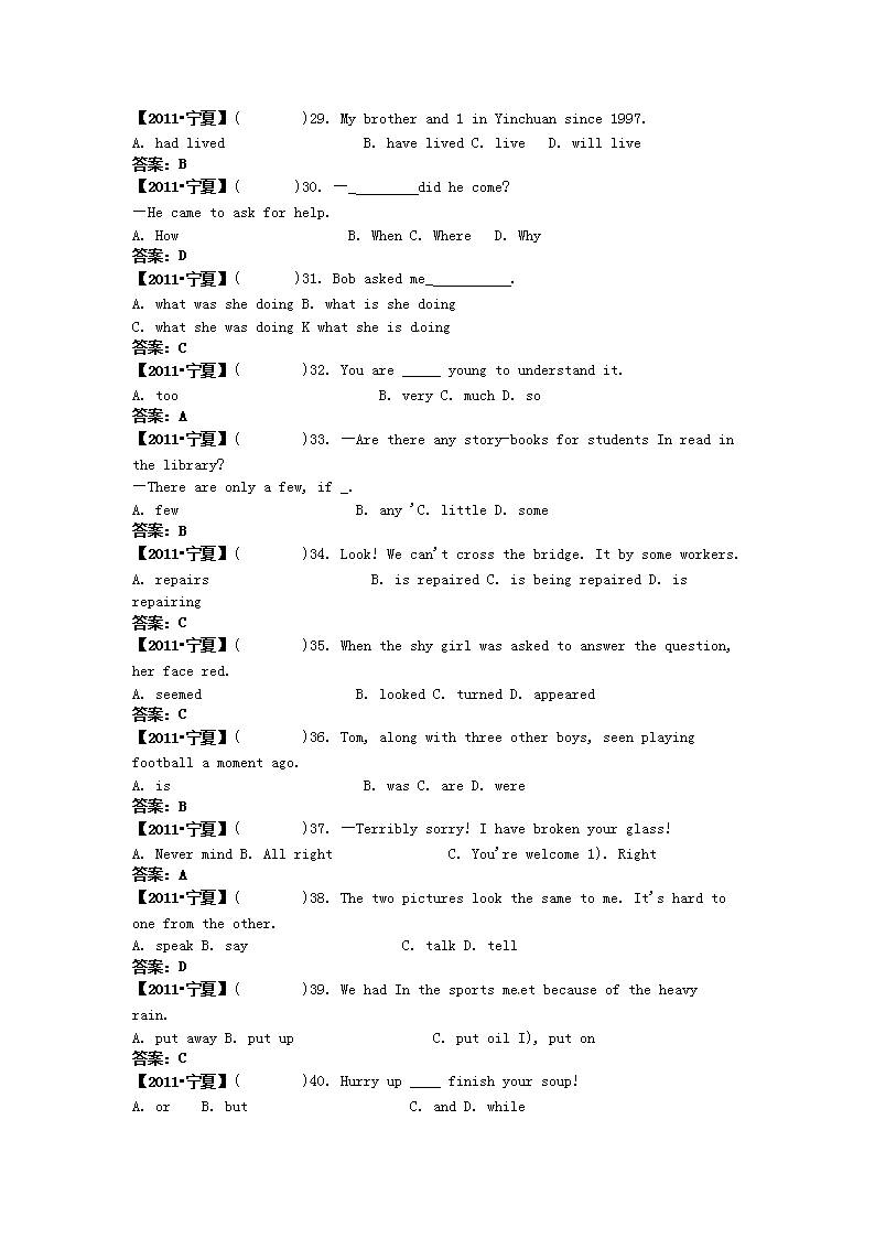 【文档名称】 2011年宁夏中考英语真题及答案(Word版).doc