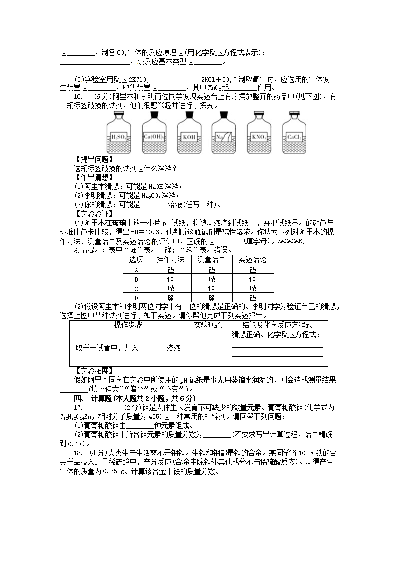 【文档名称】 2011年新疆中考化学真题及答案(Word版).doc