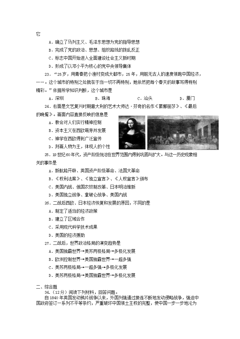 【文档名称】 2011年四川省资阳市中考历史真题及答案(Word版).doc