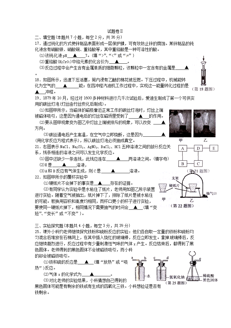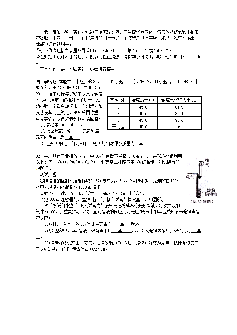 【文档名称】 2015浙江省宁波市中考化学真题及答案(Word版).doc