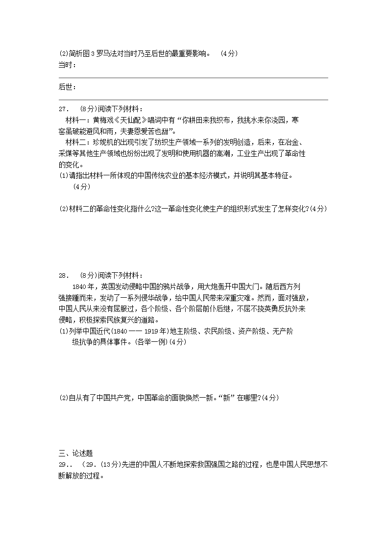 【文档名称】 2016年宁夏普通高中会考历史真题(Word版).doc