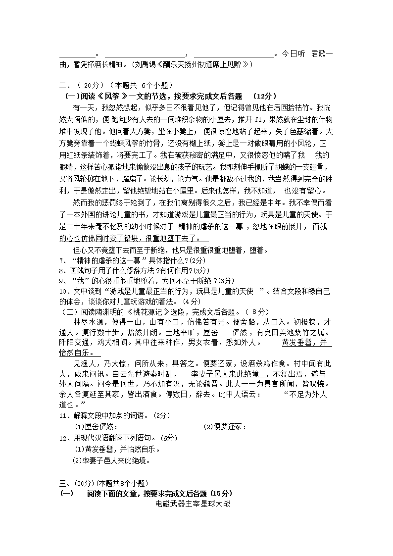 【文档预览】 无忧考网整理发布2006年贵州黔东南课改区中考语文真题及答案(Word版),前五页预览如下: