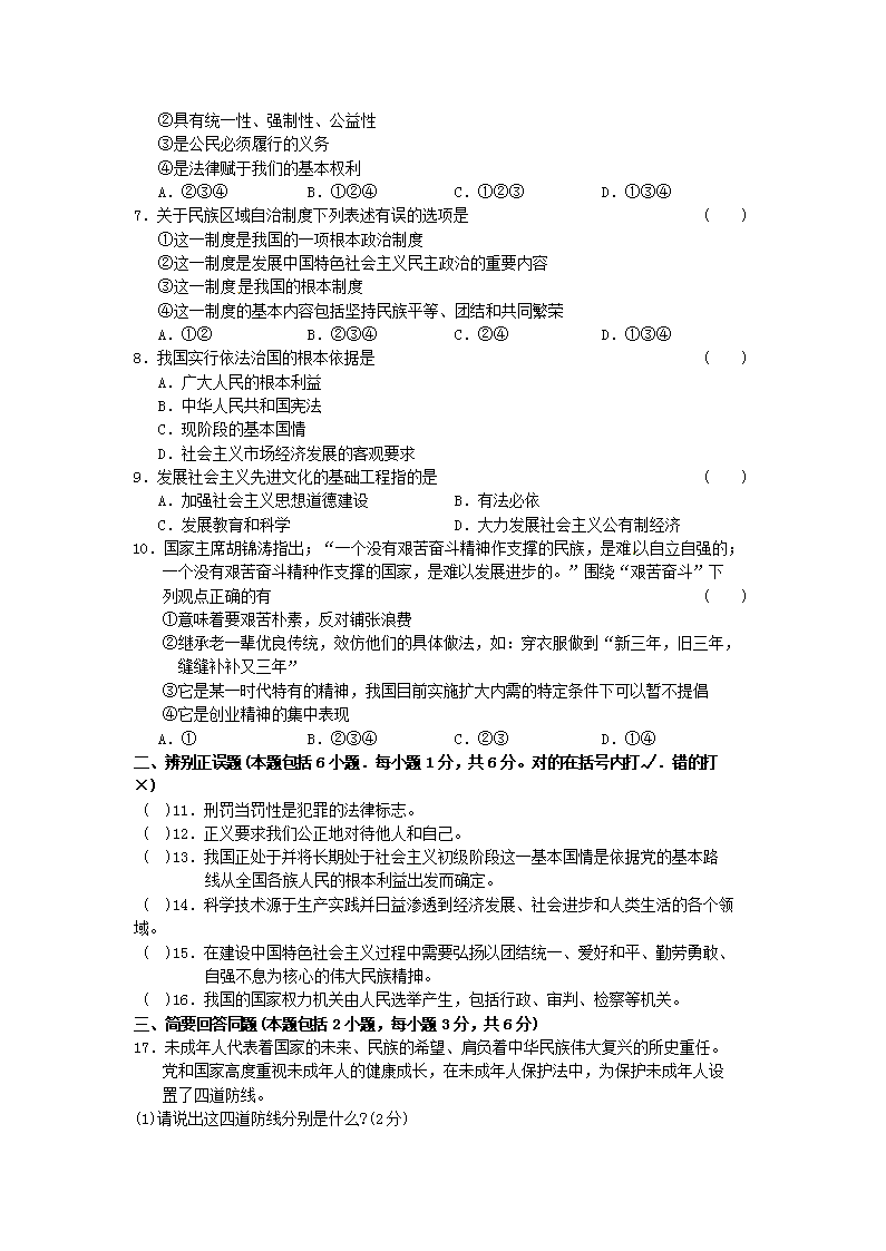 【文档预览】 无忧考网整理发布2011年内蒙古呼和浩特中考政治真题及答案(Word版),前五页预览如下: