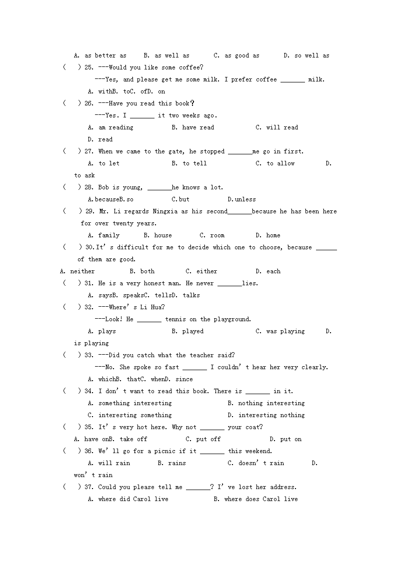 【文档预览】 无忧考网整理发布2010年宁夏中卫中考英语真题及答案(Word版),前五页预览如下: