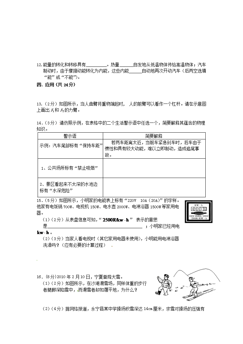 【文档名称】 2010年宁夏银川中考物理真题及答案(Word版).doc
