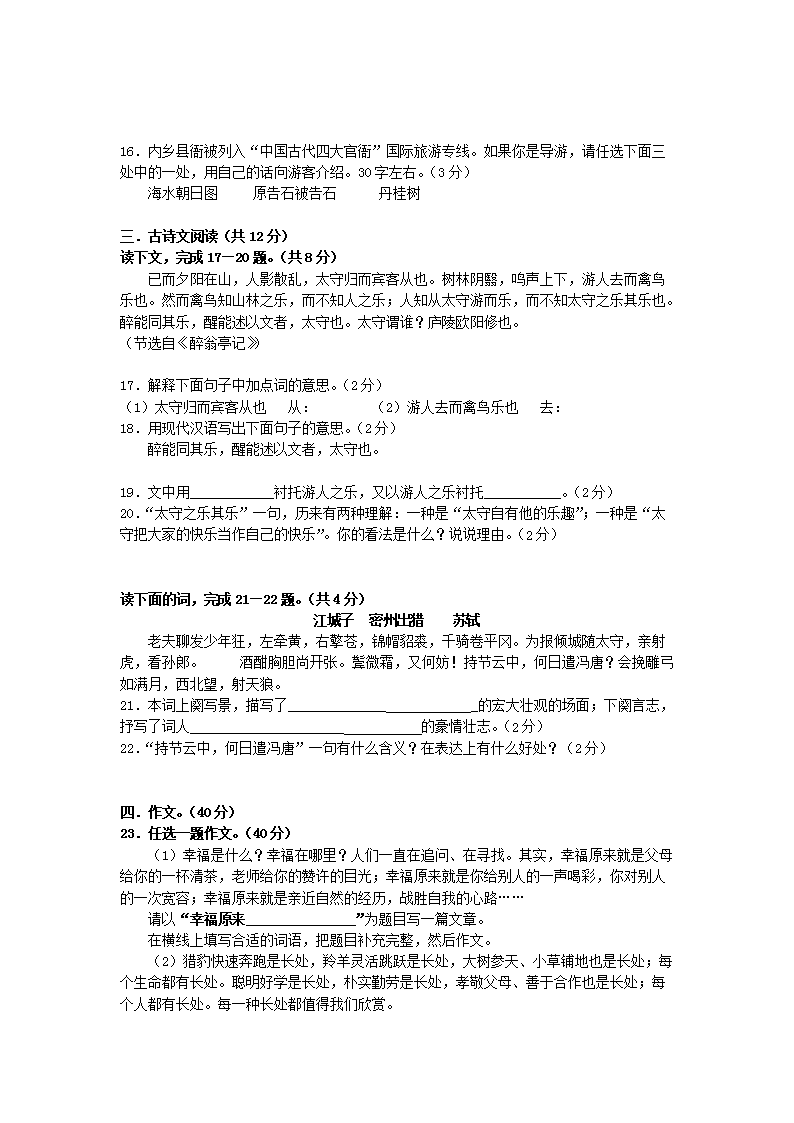 【文档预览】 无忧考网整理发布2005年河南南阳中考语文真题及答案(Word版),前五页预览如下: