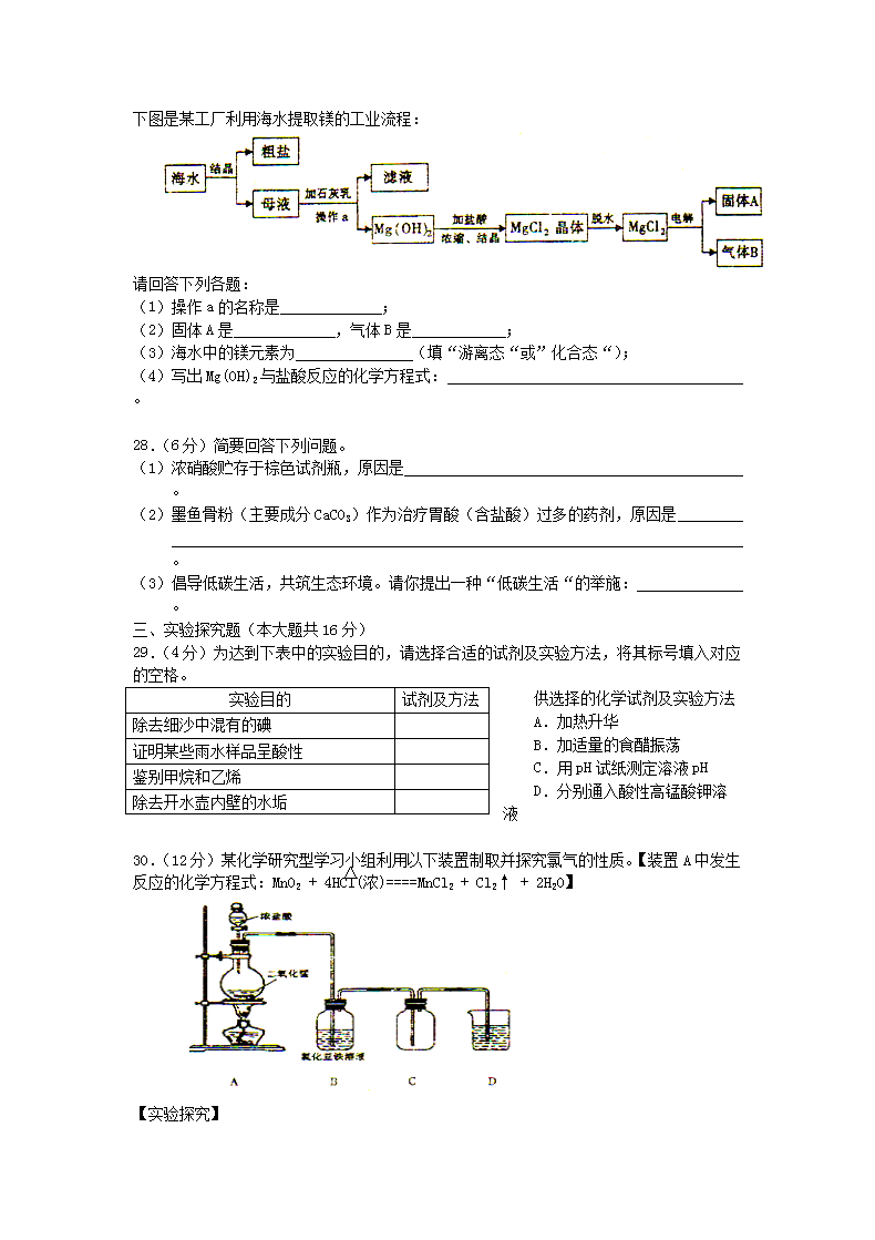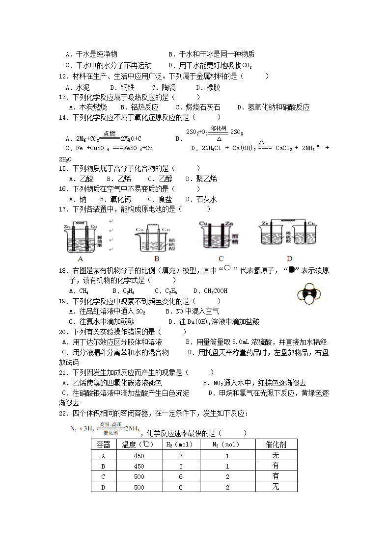 【文档名称】 2014年福建普通高中会考化学真题及答案(Word版).doc
