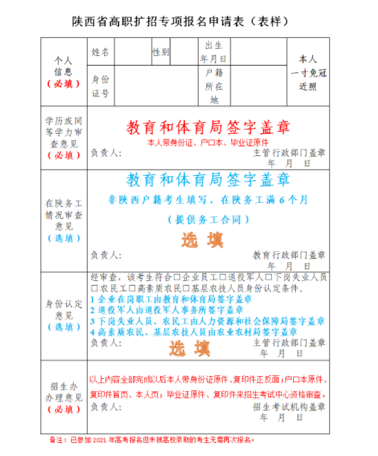 2.报名者高级中等教育阶段学历或同等学力、在陕务工情况、企业在岗职工身份由县教育和体育局负责审核。(县政府前二楼229室)