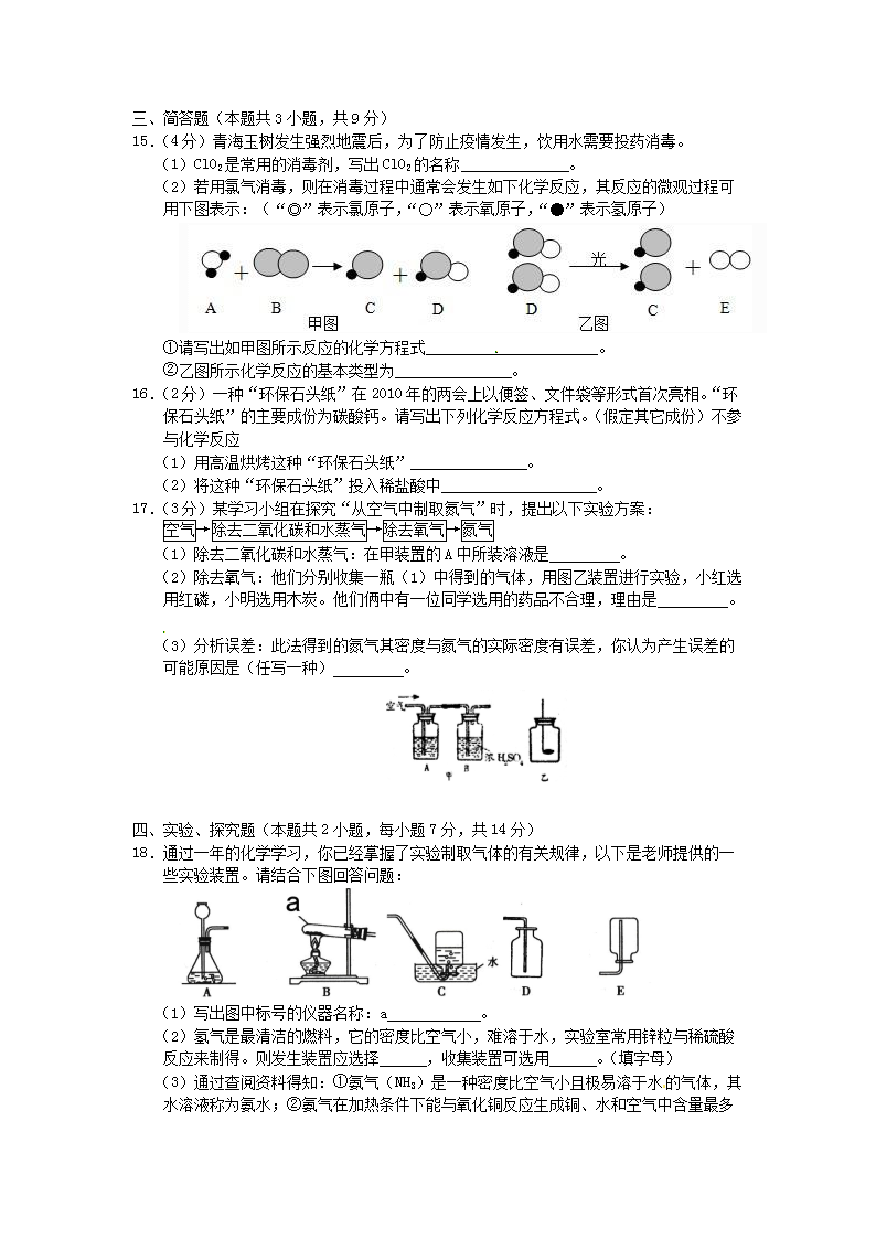【文档名称】 2010年新疆兵团中考化学真题及答案(Word版).doc