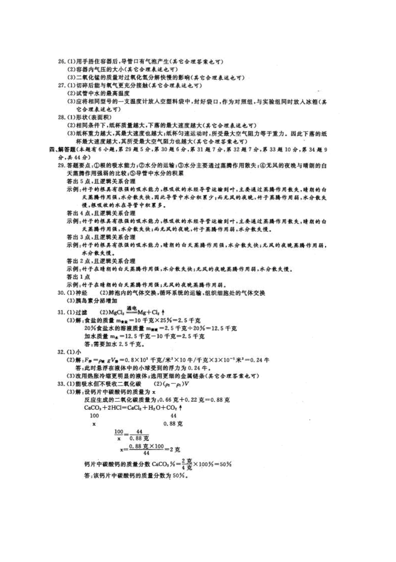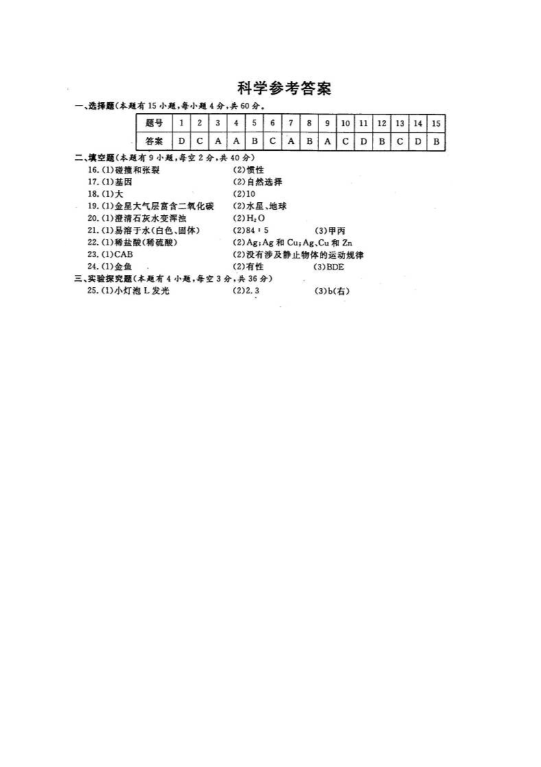 【文档名称】 2015浙江省温州市中考化学真题及答案(Word版).doc